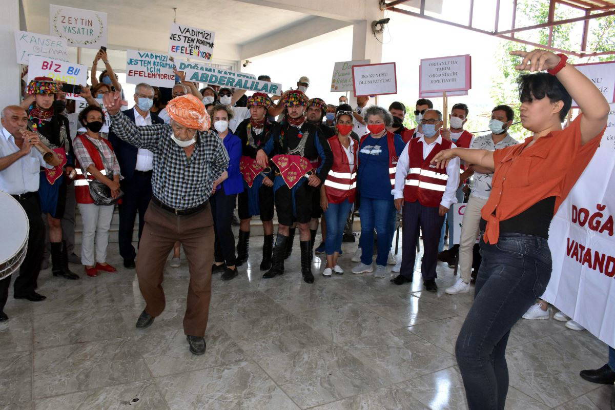 Orhanlı Köyü Doğa Gençlik ve Spor Kulübü Derneği Başkanı Hasan Tahsin Akçi, Orhanlı'nın binlerce yıldır kendi kendine yeten bir yer olduğuna dikkat çekerek, ürettikleriyle İzmir başta olmak üzere birçok şehrin gıda ihtiyacını karşıladıklarını söyledi. Göç vermeyen, aksine Türkiye'nin farklı yerlerinden göç alan Orhanlı'da 7'den 70'e herkesin doğasına, köyüne sahip çıkmak için bir araya geldiğini anlatan Akçi, "Erkence zeytin ağaçlarımız yok olacak. Pandemi şartları köyümüzün üretim alanlarının ne kadar değerli olduğunu bir kez daha gösterdi. Jeotermal enerji projelerinin durdurulması için hep birlikte mücadeleyi sürdüreceğiz. Zeytin ağaçlarımızı atalarımızdan miras aldığımız gibi çocuklarımıza bırakacağız" dedi.