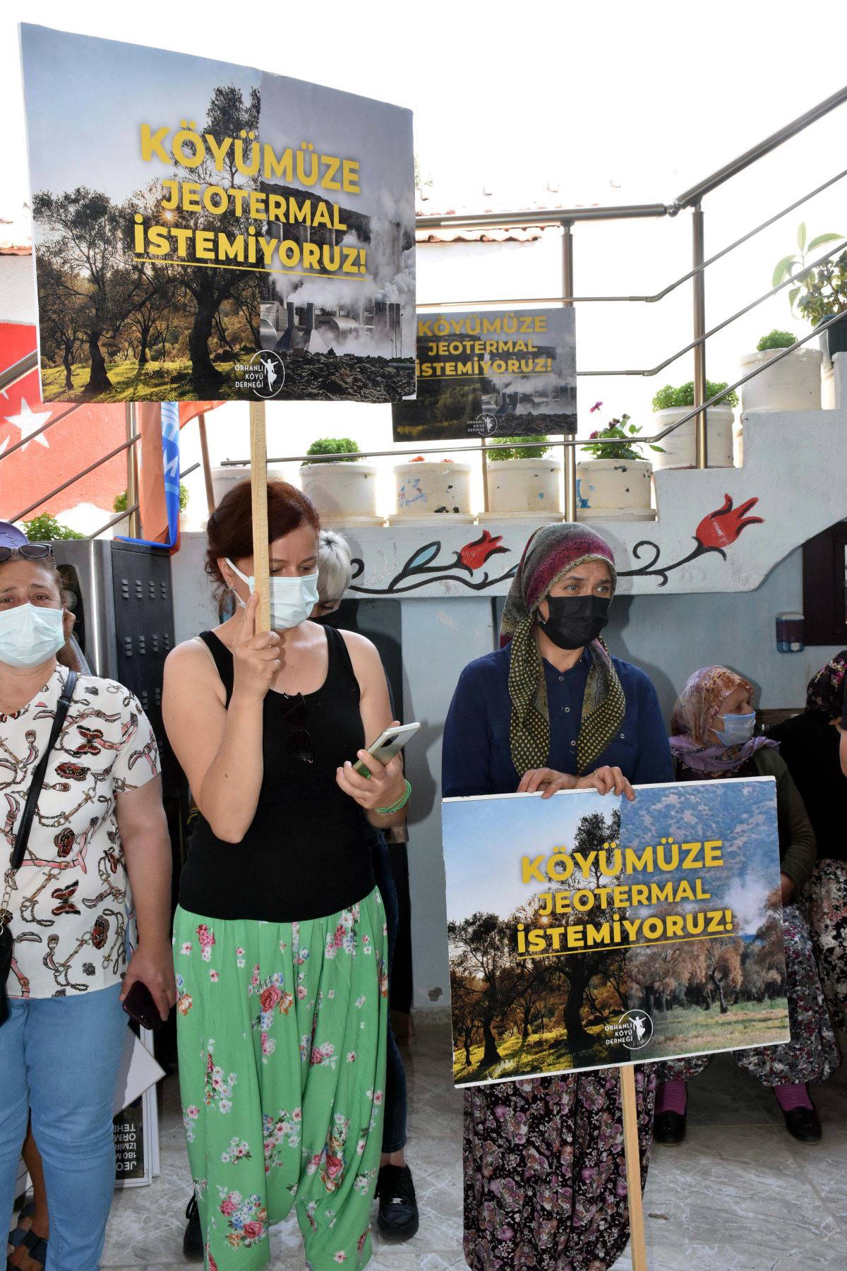"ÇED süreci başlayan bu proje, jeotermal, güneş, rüzgar enerjisiyle entegre santrali olarak planlanmıştır. Köyümüz organik tarımıyla zeytinyağı üretimiyle ve doğal güzellikleriyle tanınıyor. İzmir Yarımadası’na özgü erkence türü zeytin ağaçlarıyla ön plana çıkan köyümüzde, bu entegre enerji santrali için köy merkezinde 23 sondaj kuyusu açılmak isteniyor. Köyümüzün zenginlikleri tarım alanları ve yerleşim yerleri içinde binlerce yıllık doğa dostu üretim kültürü tehdit ediliyor. Bir an önce iptal edilmesi için hukuksal sürecin takipçisi olacağız."