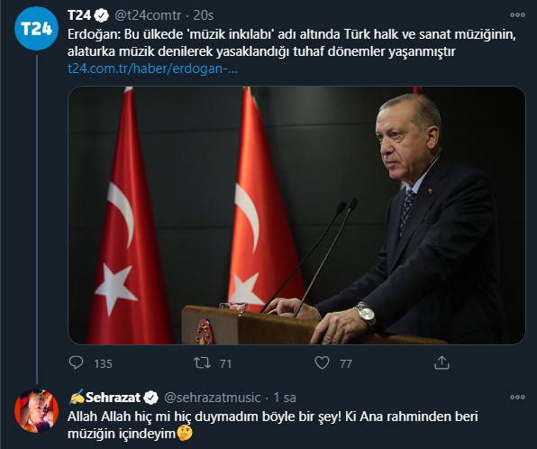 Twitter hesabından paylaşım yapan Şehrazat, Erdoğan'a şunları söyledi: