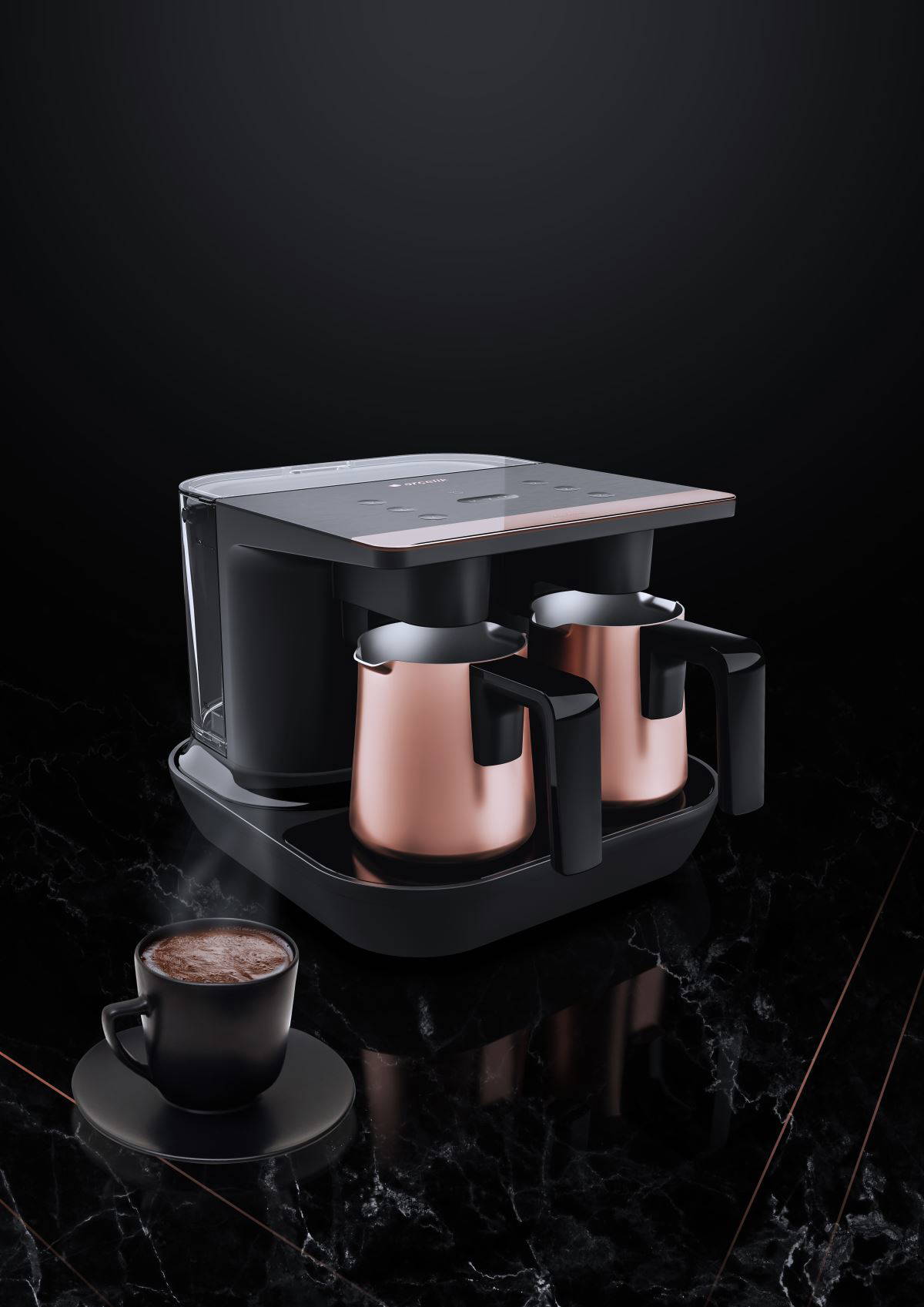 Türkiye’nin ilk Türk kahvesi makinesini üreten Arçelik, siyah-bakır renkleri, ince görünümüyle Telve’yi yeniden tasarladı. Arçelik Yeni Telve, 6 kişilik kapasitesi ve indüksiyon teknolojisi ile 3 boyutlu pişirme yaparak, kömür ateşinde pişirilen kahve lezzetini yakalıyor. Bu teknolojide kolay temizleme imkânı da bulunuyor. CooksensePro® teknolojisiyle kahveler her fincanda aynı köpük miktarıyla paylaştırılıyor. Dokunmatik kontrol paneli bulunan cihazda 1.5 litrelik su tankı ve paslanmaz çelik var.