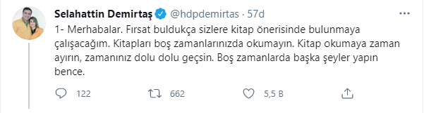 Demirtaş'ın 3. tweetinde kitap önerisi yaptığı paylaşımları şöyle: