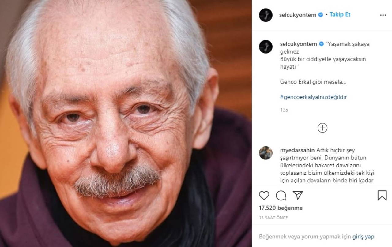 Genco Erkal'a sanatçı dostlarından ve sosyal medyadan destek sürerken, Erkal için bir paylaşım da usta oyuncu Selçuk Yöntem'den geldi.