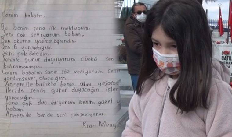 Mektubunda şehit olan babasına sevgisini ve özlemini anlatan Mirayşah, "Ben okuma yazmayı öğrendim. Ben 6 yaşındayım. Seni çok özledim. Seninle gurur duyuyorum çünkü sen benim kahramanımsın. Canım babacım, sana söz veriyorum senin gibi yardımsever olacağım" diye yazdı.
