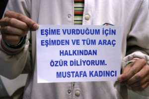''Eşimle aramda bir sebepten dolayı tartışma çıktı. Eşime küfretmesi nedeniyle sinirlenerek iki tokat attım. Olay mahkemeye intikal etti. Kadın Hakim bana ilginç cezalar verdi. Matbaaya giderek eşimden ve Araç halkından özür dilerim yazılı bin adet el ilanı bastırıp dağıttım. 50 adet de çam fidanı dikeceğim. Bir daha böyle bir olay yaşanmayacak, eşimle asla kavga etmeyeceğim. 5 yıl süresince bu suçu tekrar edersem hapis cezası alacağım.''