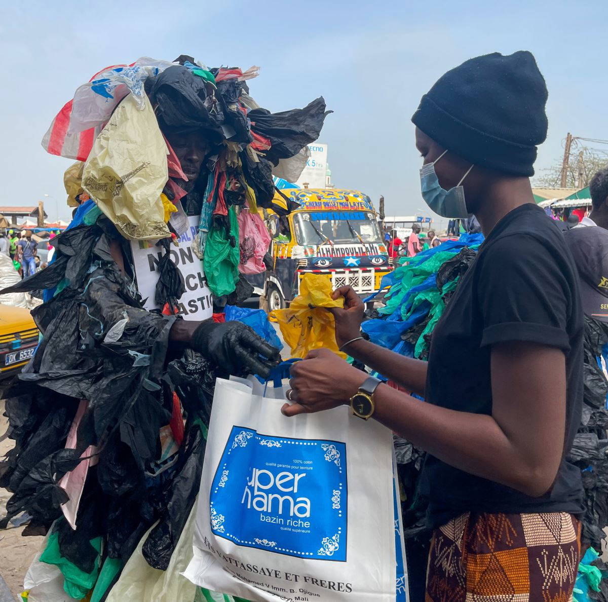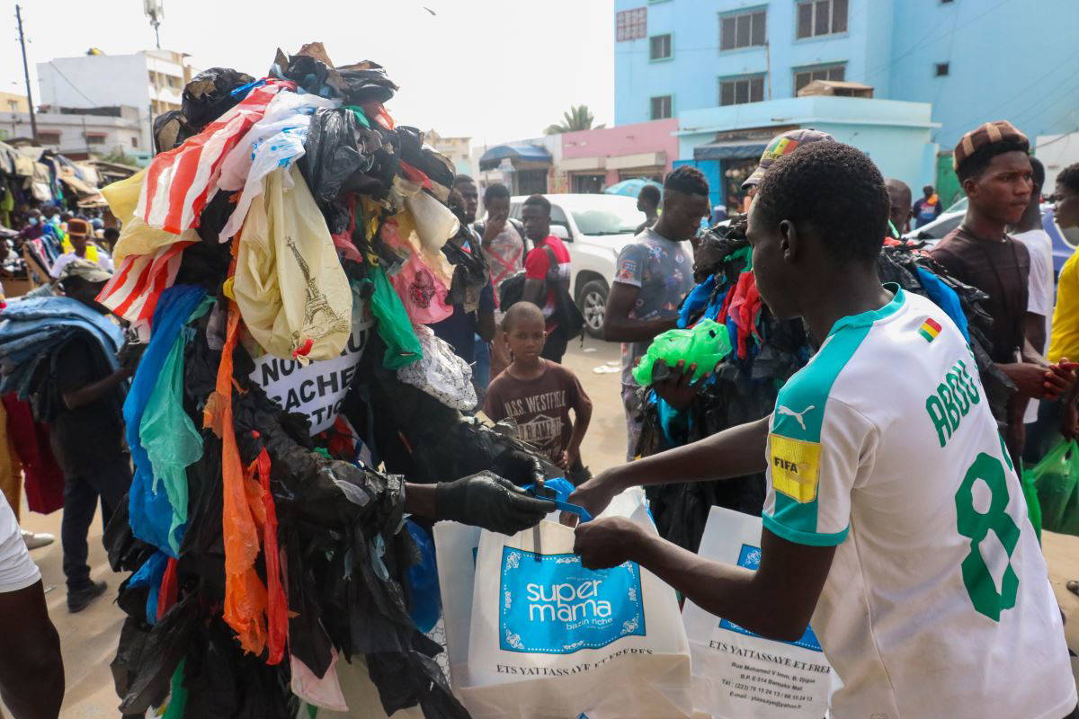 Senegal'de tek kullanımlık plastik ürünler 2020'de yasaklansa da yerel dil Wolofçada "mbouss" olarak bilinen plastik poşet kullanımının önüne geçmek oldukça güç görünüyor.