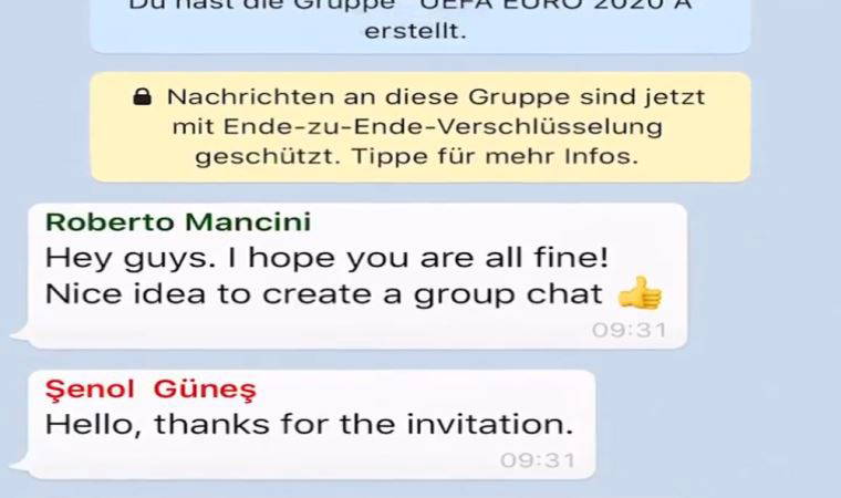12 Haziran-12 Temmuz tarihleri arasında gerçekleştirilmesi planlanan ancak koronavirüs nedeniyle 11 Haziran-11 Temmuz 2021 tarihine ertelenen Euro 2020 Avrupa Şampiyonası’nda A Milli Takım, İtalya, İsviçre ve Galler’le gruptan çıkma mücadelesi verecek. Normal şartlarda 12 Haziran 2020’de A Milli Takım’ın İtalya ile oynayacağı karşılaşmayla başlaması planlanan turnuva 1 yıl ertelenirken, A Milli Takım Teknik Direktörü Şenol Güneş, gruptaki takımların teknik adamlarıyla WhatsApp üzerinden sohbet etti. İtalya Teknik Direktörü Roberto Mancini, Galler Teknik Direktörü Ryan Giggs ve İsviçre Teknik Direktörü Vladimir Petkoviç ile görüştü. Bugün oynanması gereken İsviçre-Galler mücadelesi üzerine yapılan sohbette eğlenceli anlar yaşandı.