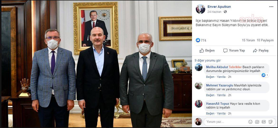 Ayrıca Başkan Aputkan, 24 Haziran günü İçişleri Bakanı Süleyman Soylu ile görüşmesi sosyal medya hesabından paylaştı. Bu görüşmeye ilişkin Karaca, “Bakanlarla olan toplantıyı kamuoyunda paylaşmasından sonra görevden alınacağı konuşuluyordu. O yüzden görüşmüş olabilirler” diye yorumladı.