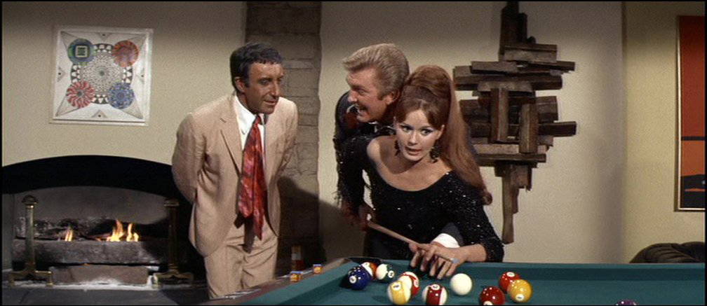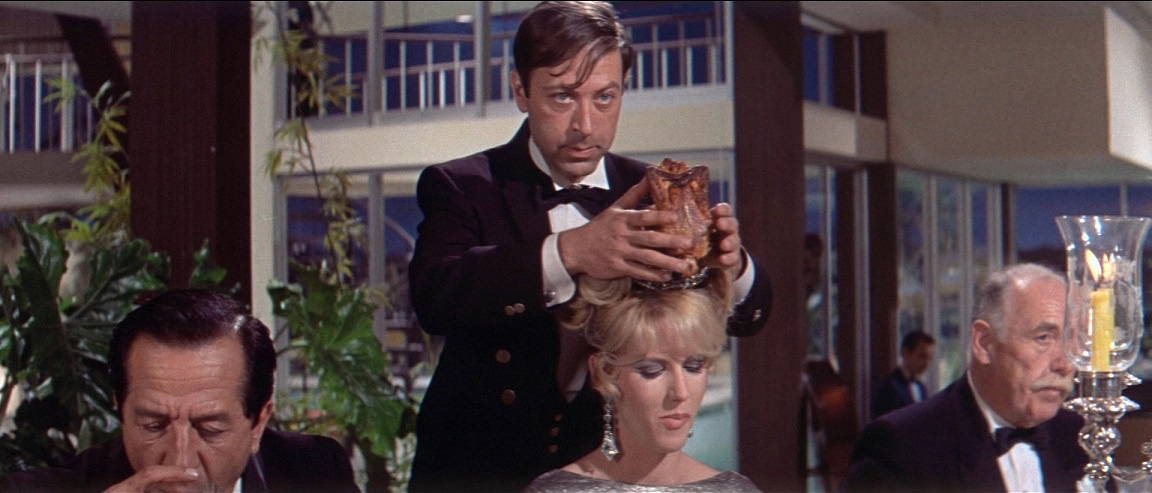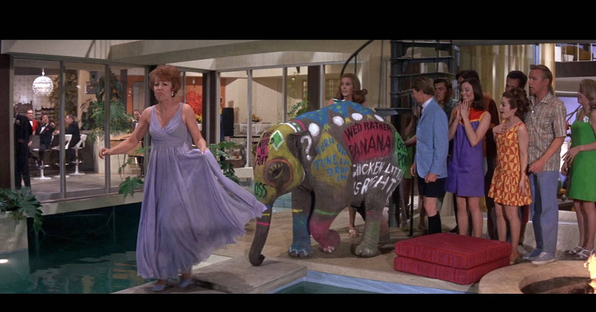 Ev sahibi yapımcı Fred Cuttelbrack, sürekli puro içen, dostlarına kendi deyimiyle Castro evvelinden kalan puroları ikram eden, etrafı kayıtsız gözlerle izleyen, karısı ‘Ruslar her an gelebilir’ deyince ‘Ruslar mı ?’ diyen, ‘Danscılar canım’ yanıtını alınca rahatlayan bir tiptir. Edwards burada Soğuk Savaş’a gönderme yapar. İçki servisi yaparken sürekli içki içen sarhoş garson rolünde Steven Manken olağanüstüdür. Fransız oyuncu Michele Monet’yi (Claudine Longet) yapımcı Cuttelbrack’la tanıştırmaya çalışan üç kağıtçı, kadın avcısi Divot (Gavin MacLeod) Hollywood’un fırsatçı kirli yüzüdür. Büyük hayranı olduğu yıldız ‘Wyoming Bill’ Kelso (Denny Miller) ile tanışan Hrundi çok mutlu olur.