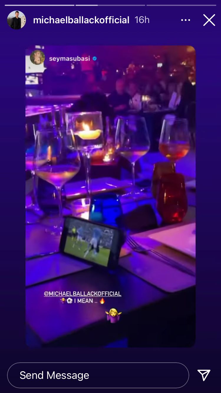 Şeyma Subaşı'nın videosunda Ballack'ın dans gösterisini izlemek yerine masaya koyduğu telefonundan Şampiyonlar Ligi finalini takip etmesi Avrupa basınında haber oldu.