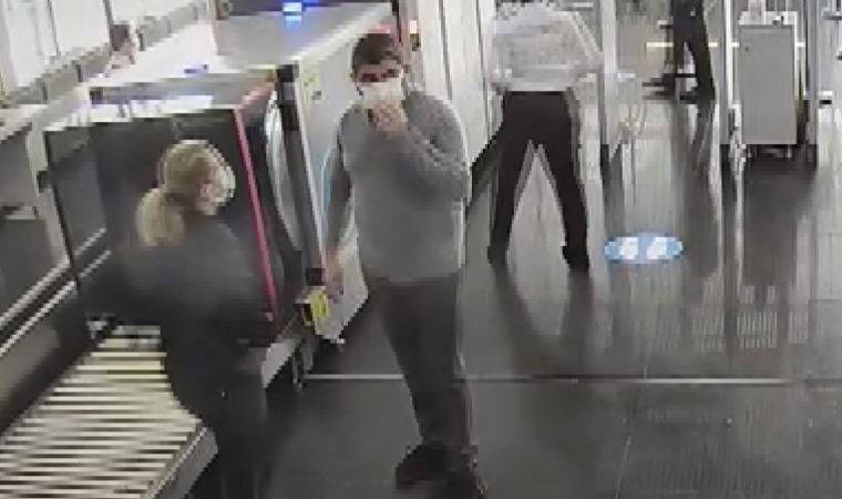 Görüntülerde Korkmaz, eşiyle güvenlik noktasından geçiyor. Korkmaz daha sonra eşiyle birlikte havalimanının içerisine doğru yöneliyor.
