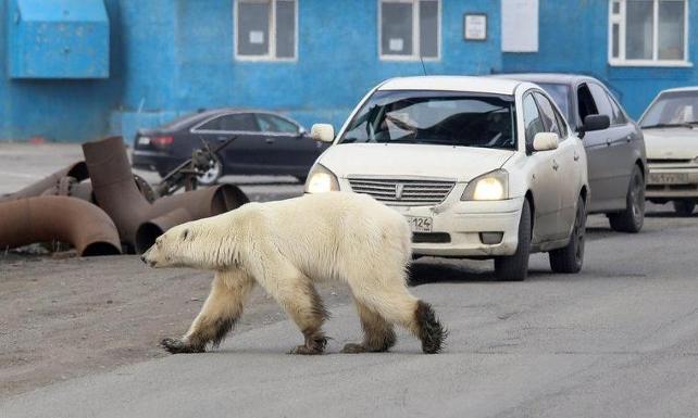 Buzullar üzerinde yaşayan ve küresel ısınma nedeniyle yaşam alanları tehdit altında olan kutup ayıları, yiyecek bulmakta zorlandıkları için yerleşim yerlerine inmeye başlamış durumda.