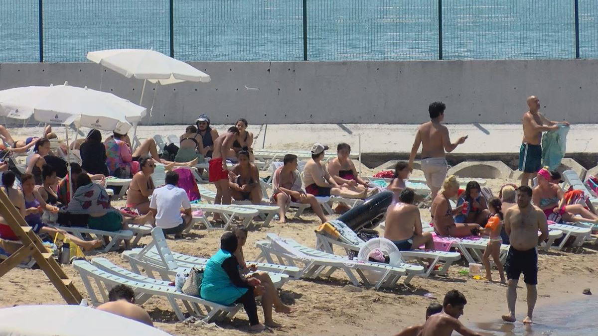 İstanbul'da etkili olan sıcak havadan bunalanlar, serinlemek için Caddebostan Halk Plajı'nı tercih etti. Bazıları denize girerken, bazıları ise yatarak güneşlendi.