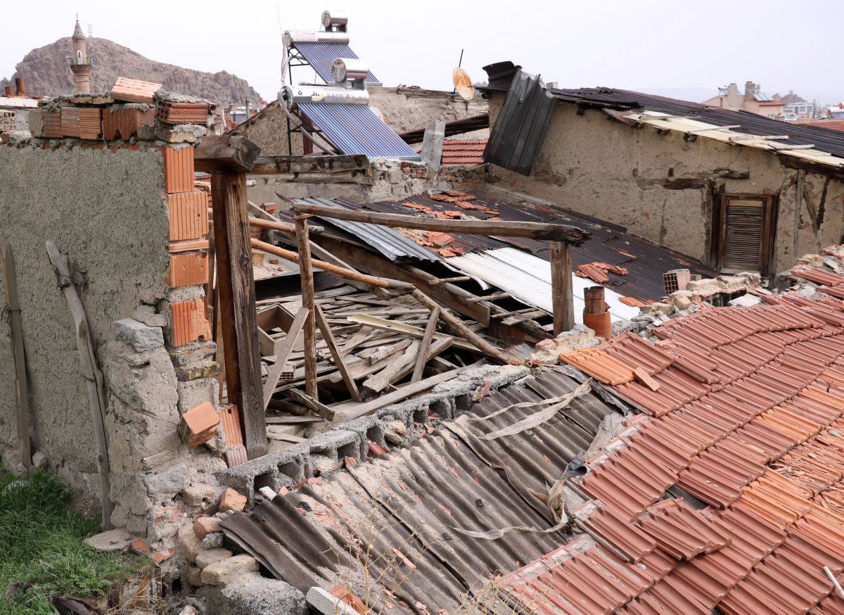 Afyonkarahisar merkezdeki Burmalı Mahallesi 146 Sokakta sabaha karşı yaşanan olayda, Afyonkarahisar Belediyesi'nin yıkım kararı aldığı ancak ev sahibi ile maddi olarak anlaşılmadığı için yıkılamayan metruk binanın sac çatısı saatteki hızı zaman zaman 40 kilometreye çıkan şiddetli rüzgar nedeniyle uçtu.