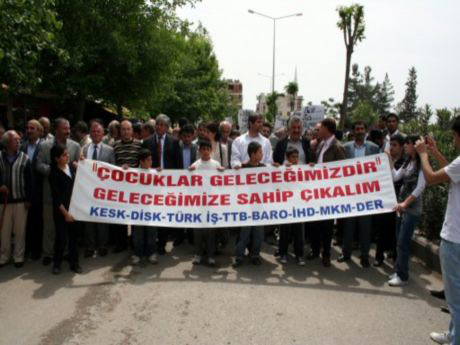 Aralarında BDP Iğdır Milletvekili Pervin Buldan, Siirt Milletvekili Osman Özçelik, Siirt Belediye Başkanı Selim Sadak, Baro, Tabip Odası, KESK ve İHD şube üyelerinin de yer aldığı grup, Eski Devlet Hastanesi önünde toplandı.