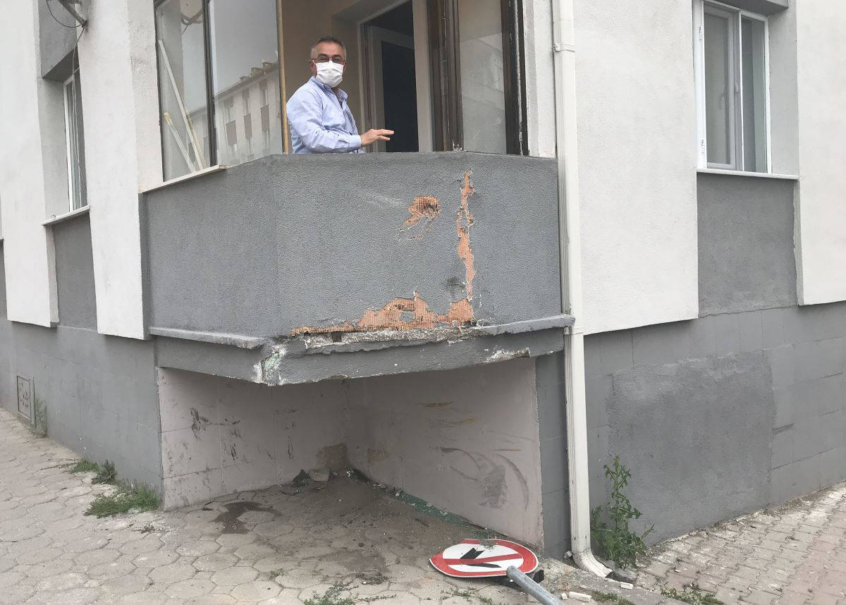 Taksinin balkonuna çarptığı ev sahibi Eyüp Duran ise, "Artık araçlar yoldaki yayaya değil balkondaki vatandaşa dahi vuruyor. Buraya bir kasis koysunlar. Karşı tarafa markete gidemiyoruz.