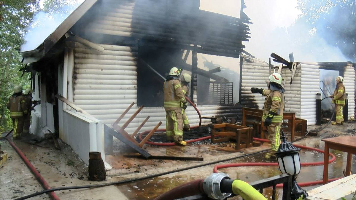 Henüz bilinmeyen bir nedenle çıkan yangında yapının ahşap olması nedeniyle kısa sürede alevler kafeteryayı sardı.