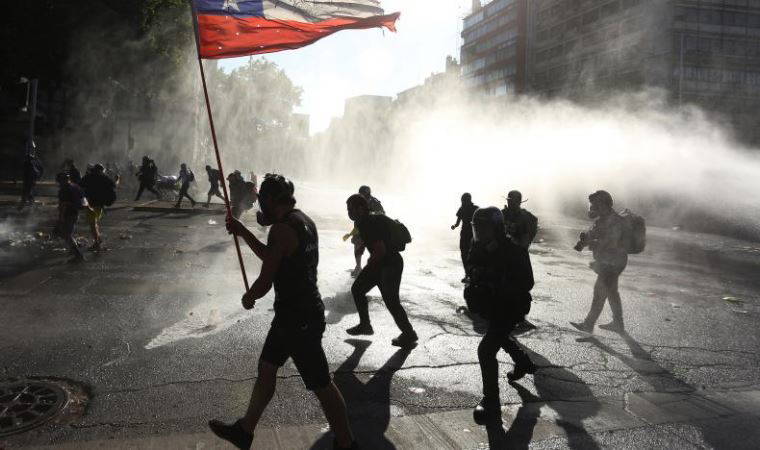 Şili’de yarın yapılacak referandum öncesi yeni anayasanın kabul edilmesini talep eden protestocular gösteri düzenledi. İtalya Meydanı’nda toplanan protestocular barikatlar kurdu ve polisle karşı karşıya geldi.
