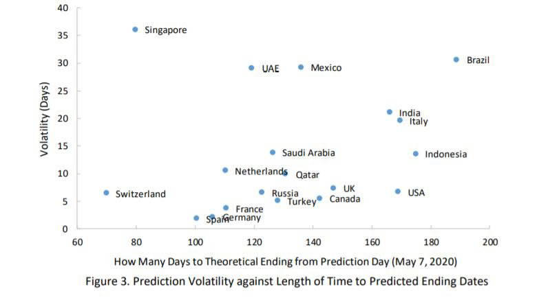 Singapur merkezli bilim ekibi hazırladıkları bir grafikle ülkelerde koronavirüsün ne zaman sona ereceğini modelledi. Kısa bir süre sonra yayından kaldırılan bu verilerin resmi ya da kesin bir gerçeklik sunmadığını aktaran bilim insanları kısa bir süre sonra bu verileri “iç kullanım” için kamuoyuna kapattı.