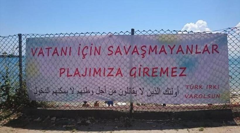 Sinop kent merkezi Kaleyazı mevkisindeki plajın işletmecisi Hakan Akıncı, plaj girişine üzerinde Türkçe ve Arapça 'Vatanı için savaşmayanlar plajımıza giremez. Türk ırkı var olsun' yazılı pankart astı. Pankart, sosyal medyada da paylaşılınca büyük tepki topladı. Bunun üzerine polisin uyarısıyla plaj görevlileri pankartı kaldırdı.