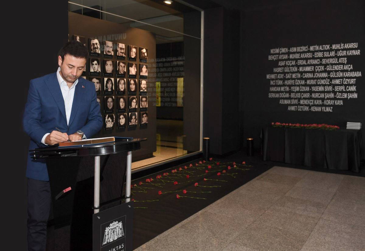 Akpolat, hayatını kaybedenlerin fotoğraflarının bulunduğu ve mumların yakıldığı yere karanfil bıraktı. Burada komşularıyla bir süre sohbet eden Başkan Akpolat Beşiktaş Cemevi’nden ayrıldıktan sonra Mustafa Kemal Kültür Merkezi’ne geçerek burada bulunan Unutmamak Müzesi’ni gezerek yetkililerden, müzede sergilenen eserler hakkında bilgi aldı. 35 sanatçının kendileri tarafından bir bölümü yakılmış eserlerinin sergilendiği müzedeki incelemelerinin ardından ziyaretçilere açılan defteri imzalayan Akpolat duygu dolu anlar yaşadı.