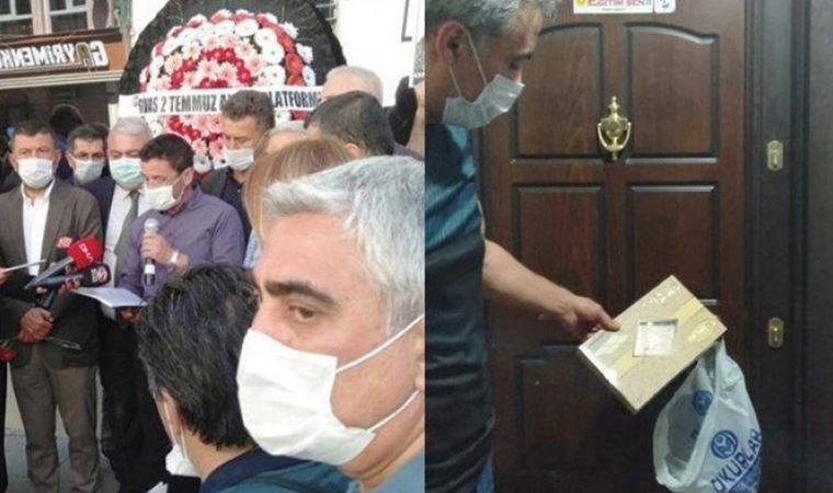 Anmanın ardından şubenin bulunduğu daireye giden üyeleri kapıya asılmış bir helva poşeti karşıladı.