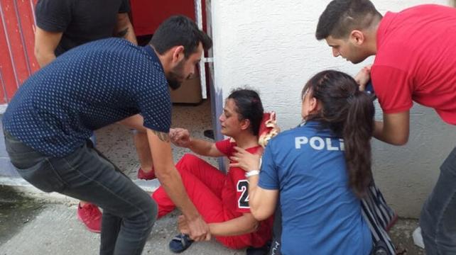 Haber verilmesi üzerine olay yerine gelen polis ekibi, başından yaralanan Güneş'i sakinleştirmeye çalıştı.