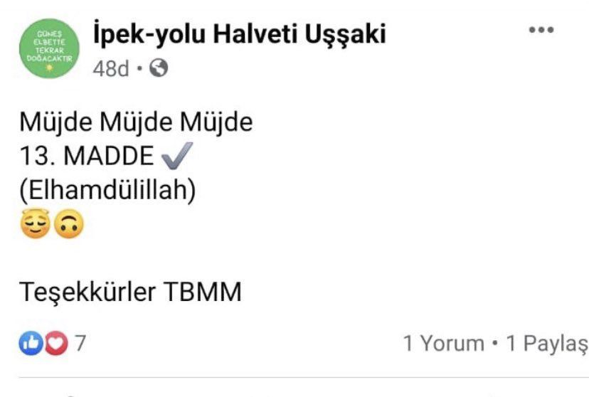 Son olarak çocuğa yönelik cinsel istismar suçundan ceza alan bir tarikat şeyhinin bağlı bulunduğu tarikatın 13. maddenin kabulünü 'müjdeleyerek' paylaştığı iddia edildi.