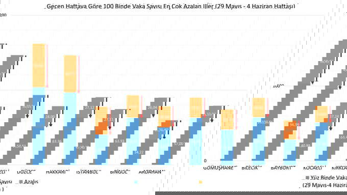 Koca'nın paylaştığı haftalık verilere göre; Bolu, Kars, Gümüşhane, Kütahya ve Ankara 100 bin kişide en çok vaka görülen iller oldu.