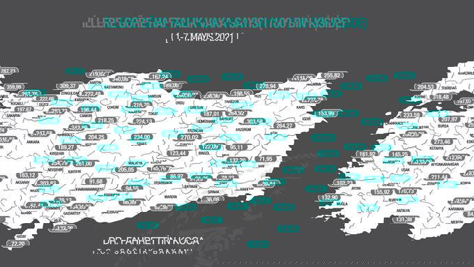 Haftalık verilere göre; İstanbul, Kastamonu, Tekirdağ, Zonguldak ve Erzurum 100 bin kişide en çok Covid-19 vakası görülen iller oldu.