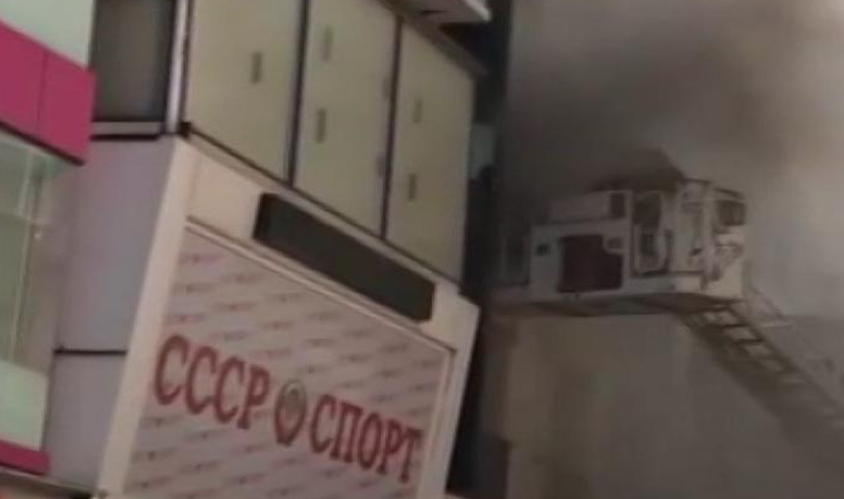 Kadın itfaiye tarafından merdiven uzatılarak kurtarıldı.