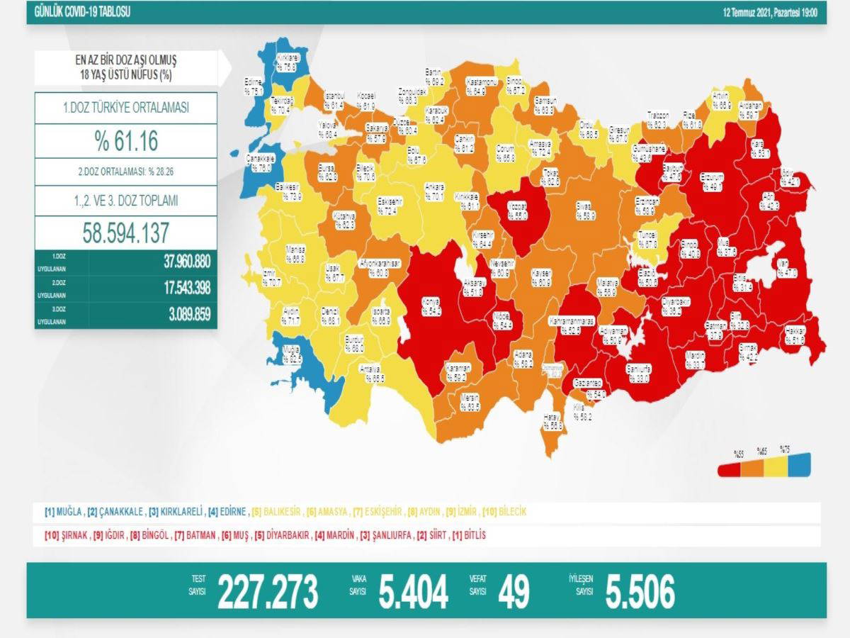 Türkiye'nin 12 Temmuz 2021 güncel koronavirüs tablosu şöyle: