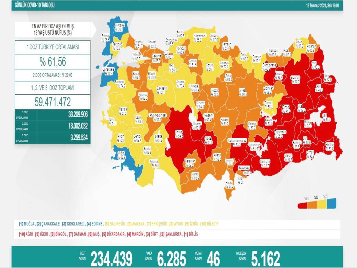 Türkiye'nin 13 Temmuz 2021 güncel koronavirüs tablosu şöyle: