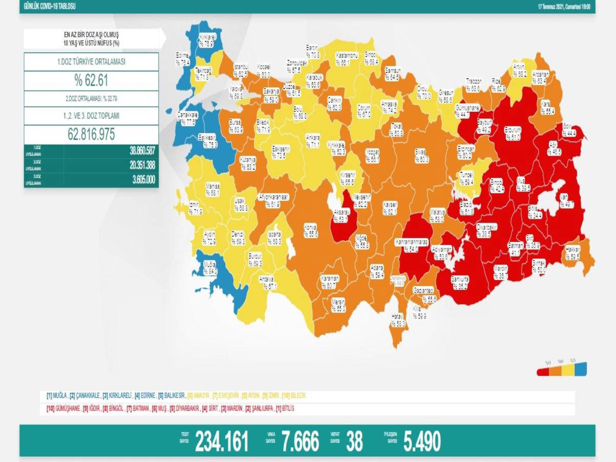 Türkiye'nin 17 Temmuz 2021 güncel koronavirüs tablosu şöyle: