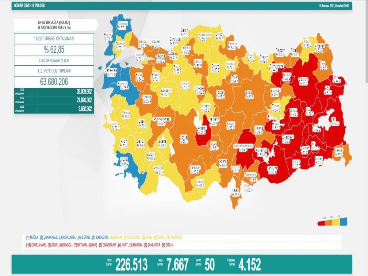 Türkiye'nin 19 Temmuz 2021 güncel koronavirüs tablosu şöyle: