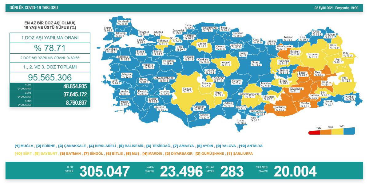 Türkiye'nin 2 Eylül 2021 güncel koronavirüs tablosu şöyle: