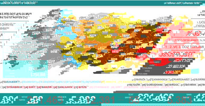 Türkiye'nin 24 Temmuz 2021 güncel koronavirüs tablosu şöyle: