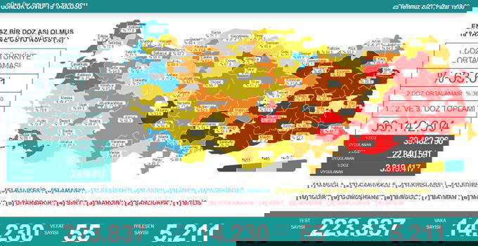 Türkiye'nin 25 Temmuz 2021 güncel koronavirüs tablosu şöyle: