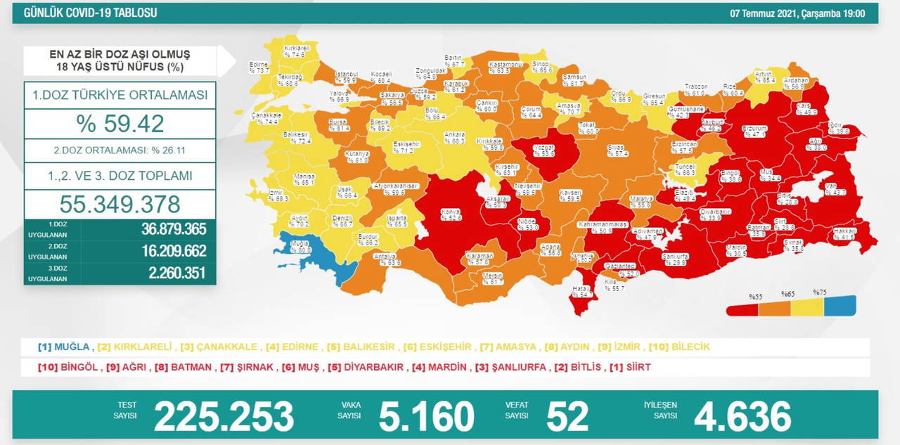 Türkiye'nin 7 Temmuz 2021 güncel koronavirüs tablosu şu şekilde: