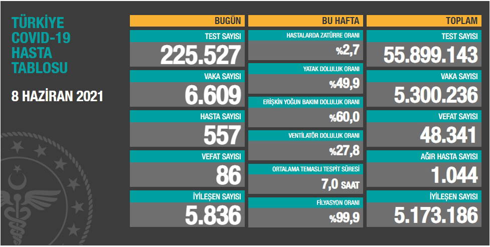 Türkiye'nin 8 Haziran 2021 güncel koronavirüs tablosu şöyle: