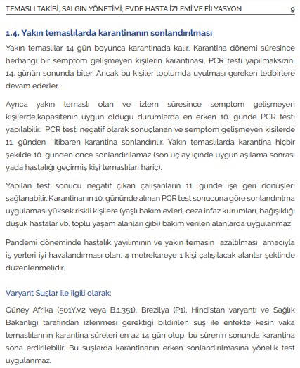 Yeni rehberde test için bekleme süresi de 10 güne uzatıldı. Varyant tespit edildiğinde de karantina süresi 14 gün.