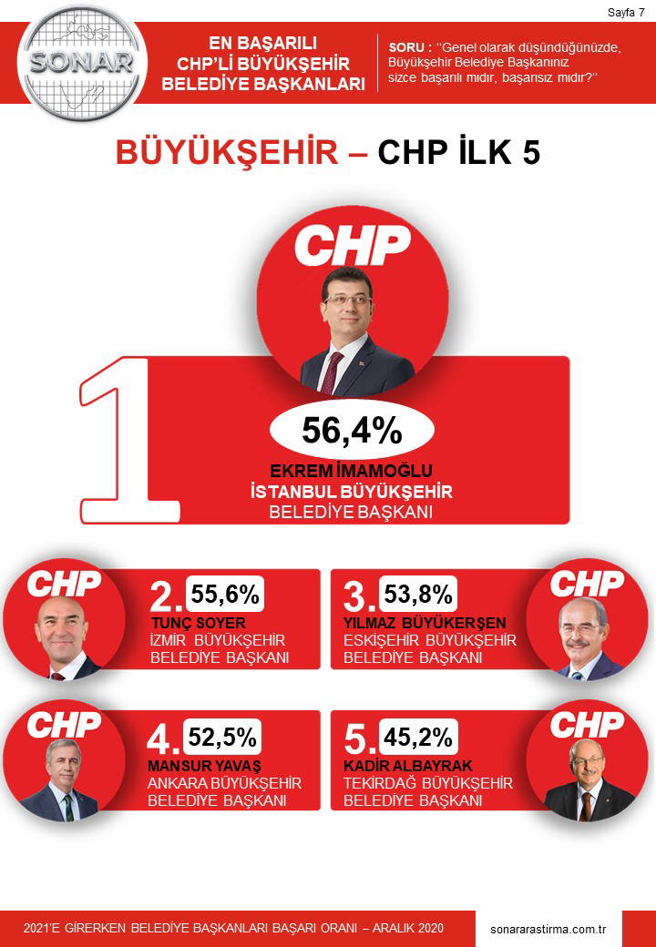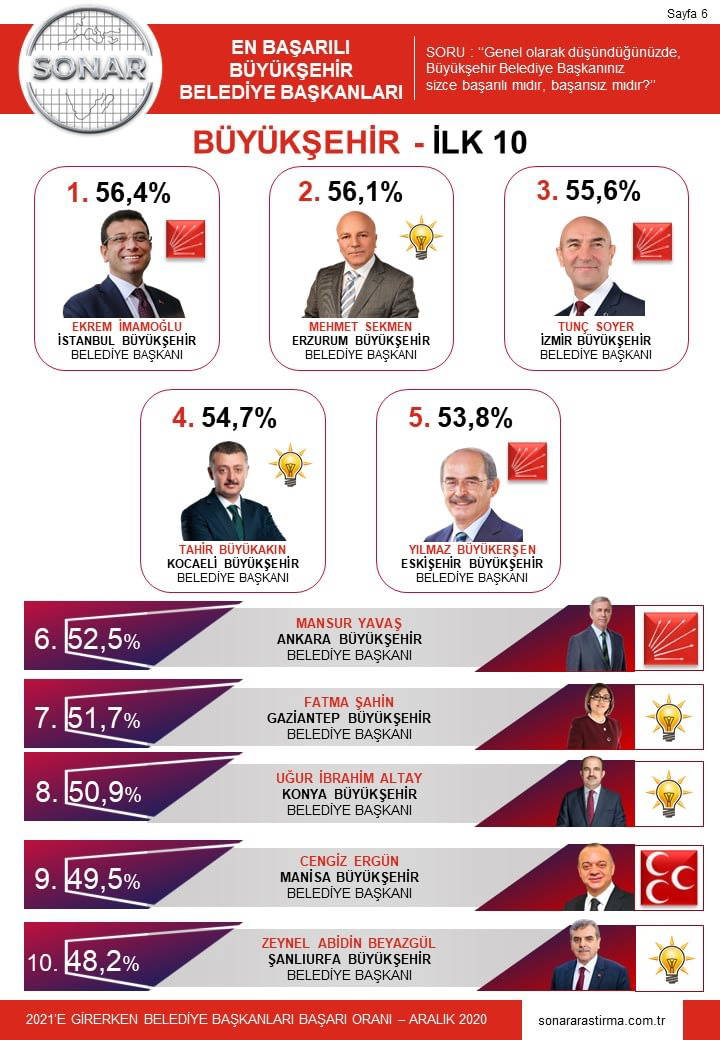 1 Kasım-27 Aralık tarihinde yapılan ankette yurttaşlara "yaşadığınız şehirdeki belediye başkanı başarılı mı?” sorusu soruldu. 20 büyükşehrin 7 tanesinde yüz yüze, 13'ünde ise telefonla yapılan ankette ilk 10 belirlendi. Anket sonuçlarına göre İstanbul Büyükşehir Belediye Başkanı Ekrem İmamoğlu en başarılı başkan seçildi.