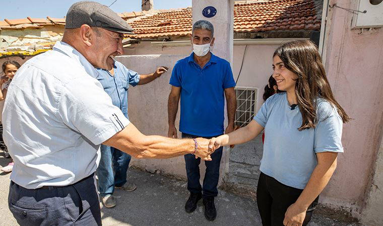 Başkan Tunç Soyer ile yaşadığı mahallede dolaşan Narin Bartık, “Sorduğum sorudan sonra geldiniz. Hiç beklemiyordum. Teşekkür ederiz” ifadelerini kullandı. Soyer ise “Ben de sana teşekkür ederim davet ettiğin için. Senin tiyatro aşkını öğrendim. Başarılar diliyorum, ben de sana yardımcı olacağım tiyatro hayatında” dedi.