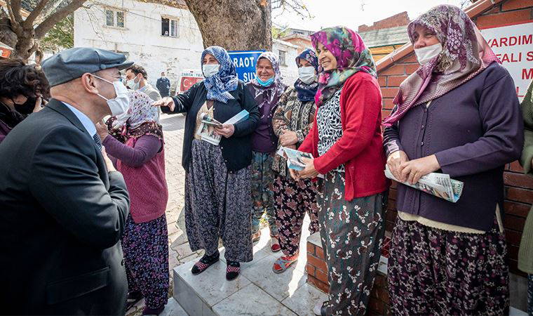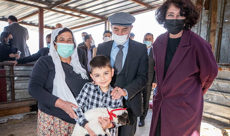 Başkan Soyer, Karakızlar köyü sakinlerini de ziyaret etti. Burada Büyükşehir tarafından 4 koyun verilen Fatma Sezer ve ailesiyle bir araya gelen Soyer, tarım ve hayvancılığın önemine değindi. Fatma Sezer de şunları söyledi: “Bize 4 koyun verdi. Biz onları büyütüp çoğalttık. Allah razı olsun. Seve seve bakıyoruz. Sadece yem pahalı olduğu için o konuda biraz zorlanıyoruz.” Soyer çifti kuzuları da sevdi.