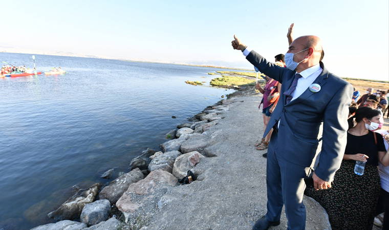 İzmir’in kamu arazilerinin, doğal, kültürel ve tarihi mirasının tahrip edilmesine engel olacaklarını söyleyen Soyer, “Hiç kimse, bu kentteki halka ait alanları rant kapısı olarak görmesin. Binlerce canlının evi, dünyanın ve ülkemizin en özel doğal alanların biri olan bu alanın korunması ve gelecek nesillere UNESCO Dünya Mirası olarak taşınabilmesi için buradan Çevre ve Şehircilik Bakanlığı’na, Kültür ve Turizm Bakanlığı’na, Tarım ve Orman Bakanlığı’na, İzmir Valiliği’ne ve devletimizin diğer tüm ilgili kurumları ile İzmir’in tüm odaları ve sivil toplum kuruluşlarına bir çağrı yapmak istiyorum. Bizimle aynı hassasiyeti paylaştığınıza inanıyor ve yüksek bedellerle satılan bu alanlarda yapılaşmaya izin verilmemesi yönünde bir irade ortaya koymanızı rica ediyorum. Gelin bu özel alanı koruyarak geleceğe taşımanın onurunu, hep birlikte yaşaya lım” şeklinde konuştu.