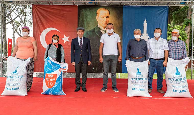 İzmir Büyükşehir Belediyesi’nintarım politikasının dört başlığının bulunduğunu, bunlardan ilkinin yerli tohumu gün ışığına çıkarmak olduğu kaydeden Soyer, “en büyük hazinemiz” dediği atalık tohumları çoğaltacaklarını söyledi. Soyer, “Yerli tohumları yok ediyorlar, buna izin vermeyeceğiz. O tohumları yaşatacağız. Dört başlıktan bir diğeri de mutlaka tarım ürünlerini işleyeceğiz. Tarım ürünü sadece tarım ürünü olarak kaldığı sürece değerini bulmuyor. Katma değerini büyütecek şekilde işlememiz lazım. Üçüncüsü, üretici tek başına hiçbir şeydir. Kooperatif çatısı altında mutlaka bir araya gelmek ve el ele vermek lazım. Siz bir araya gelirseniz, ancak o zaman köyünüzü pazarlayacak bir güç olabiliyorsunuz. Siz kooperatif çatısı altında örgütlenin ne üretiyorsanı z almaya söz veriyorum. Yeter ki, kooperatif çatısı altında örgütlenin. Dördüncüsü de; siz ürettikçe biz satın almaya devam edeceğiz. Ama yerli tohuma sahip çıkacaksınız. Ürününüzü işleyeceksiniz. Ayrıca ilçede 12 üreticiye 40 manda dağıtılacak. Mandanın sütünden yapılan peynir dünyanın parası. Biz bu peyniri ithal ediyoruz. Oysa manda buradaydı. Burada ürüyordu, çoğalıyordu ve üreticisi ekmek yiyordu. Biz bu hatalardan döneceğiz ve bu toprağın bereketini yeniden gün ışığına çıkaracağız. Siz yeter ki alın teri dökmeye devam edin. O alın terinin bir zerresini karşılıksız bırakmayacağız” dedi. Konuşmaların ardından yem çuvalları köylülere dağıtıldı.