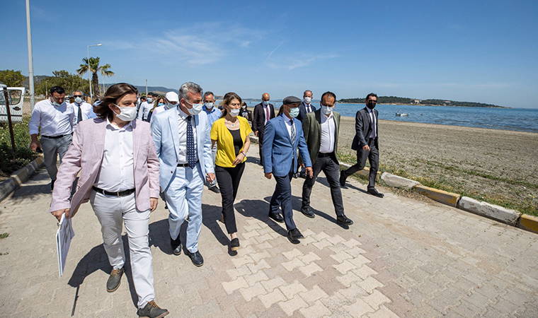 Başkan Soyer'in ikinci durağı Urla Kum Denizi plajı oldu. Başkan Soyer, İzmir Büyükşehir Belediyesi tarafından daha önceki yıllarda yaklaşık 1 kilometresi düzenlenen sahilde ikinci etap projesine başlayacaklarının müjdesini verdi. Soyer, 16 bin 800 metrekarelik sahil bandında yürüyüş ve bisiklet yolları oluşturacaklarını, kumsalı da ıslah ederek ekonomik ve günübirlik tatil yapmak isteyen yurttaşların ilgi odağı olan Urla Kum Denizi Plajı'nı su sporları ve çeşitlendirilmiş aktivitelerle dev bir rekreasyon alanına dönüştüreceklerini söyledi. Atatürk Mahallesi Muhtarı Rahime Tekin'in çok eski ve bakımsız olan muhtarlık binasının yenilenmesi ile ilgili talebini de dinleyen Soyer, bürokratlara muhtarlık binasının yenilenmesi talimatını verdi.