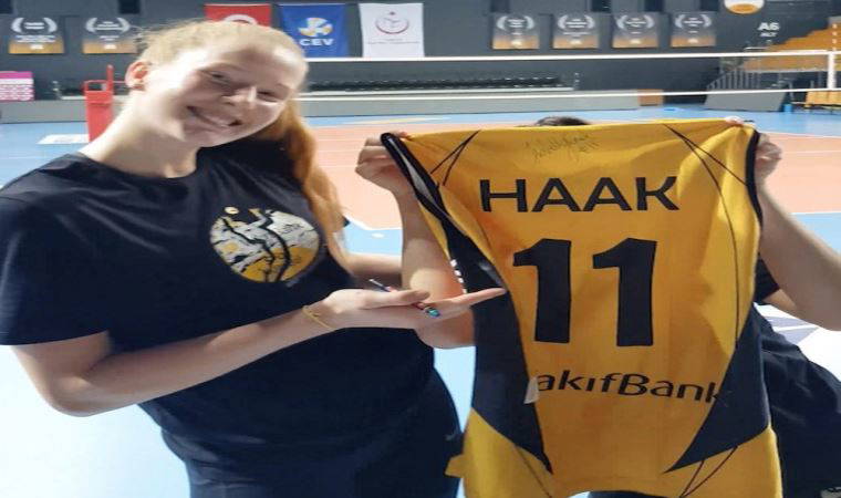 VakıfBank Kadın Voleybol Takımı’nın İsveçli oyuncusu Isabelle Haak, koruyucu ekipmanının arkasına ’Haak’ yazan sağlık görevlisi Gökhan Yılmaz’a verdiği imzalı forma sözünü yerine getirdi.