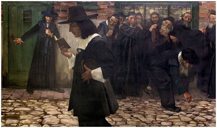 1656'da 24 yaşındaki genç Spinoza Amsterdam Sinagog'u tarafından, her ikisi de Dekartçılığın bir formuna dayanan, "Tanrı'nın evren ve doğanın işleyişi olduğu, bir kişiliği olmadığı ve Tevrat'ın Tanrı'nın doğasını öğretmek için mecazi ve simgesel bir kitap olduğu" iddialarını savunduğu için Yahudi cemaatinden kovulur. Kovulmasının ardından adını Benedictus’a (ilk adı olan Baruch'un Latince karşılığı) çevirdi.