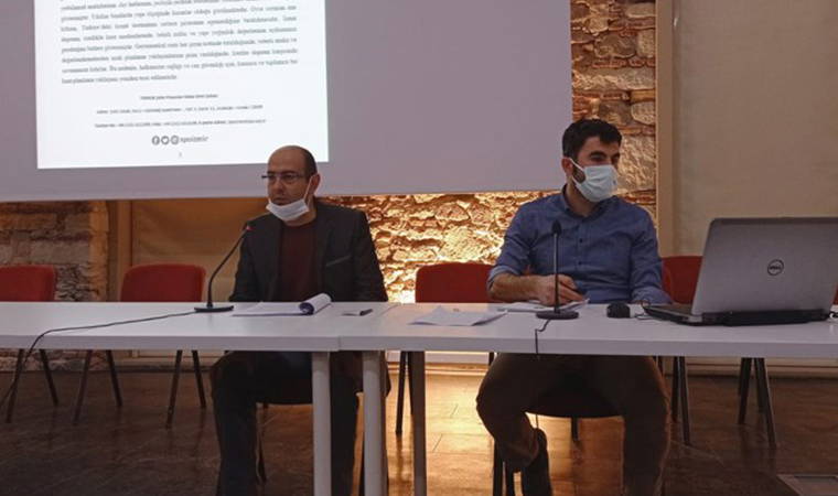 Türk Mimar ve Mühendis Odaları Birliği (TMMOB) İzmir Şehir Plancıları Odası (ŞPO) Yönetim Kurulu, Çevre ve Şehircilik Bakanlığı’nca onaylanan 'İzmir-Manisa Planlama Bölgesi 1/100.000 ölçekli Çevre Düzeni Planı Değişikliği'nin İzmir Valiliği Çevre ve Şehircilik İl Müdürlüğü’nce askıya çıkarılmasına ilişkin hazırladıkları raporu İzmir Mimarlık Merkezinde basına açıkladı.