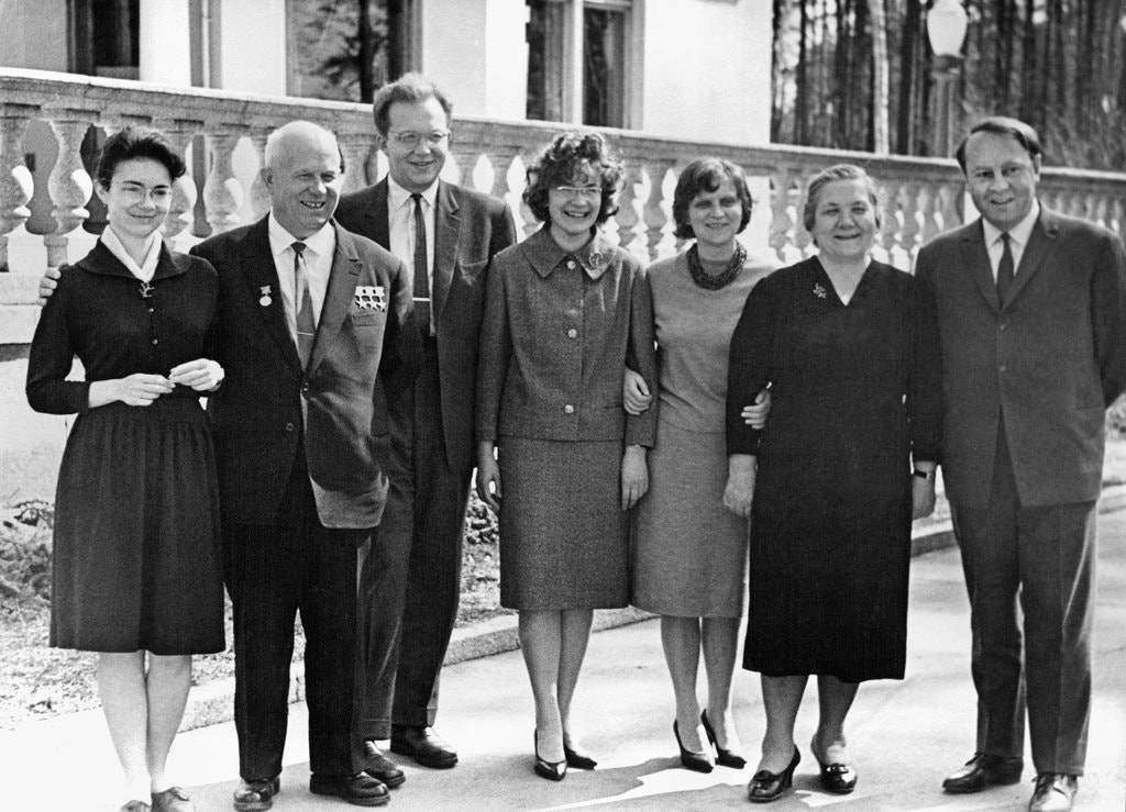 Sovyet Başbakanı Nikita S. Kruşçev (soldan ikinci) yanında oğlu Sergei ve diğer aile üyeleriyle birlikte, 1960'lar. Fotoğraf: Novosti Basın Ajansı